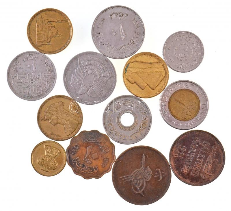 Leírás: Egyiptom 1863-2008. 12db-os forgalmi érme tétel + Palesztina 1941. 2M Cu T:vegyes