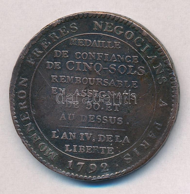 Franciaország 1792. 5S Br "Alkotmány", kiadó: Monneron fivérek, Párizs T:2-,3 több durva ph.