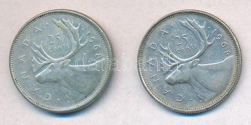 Canada 1968.... https://www.darabanth.com/hu/318-Gyorsarveres/318.0/Numizmatika/Kulfoldi-fem-es-ezustpenzek~1000012/Kanada-1968-25c-Ag-II-Erzsebet-2x-T2-2---Canada-1968-25-Cents-Ag-Elizabeth-II-2x-CXF-V~II1754233