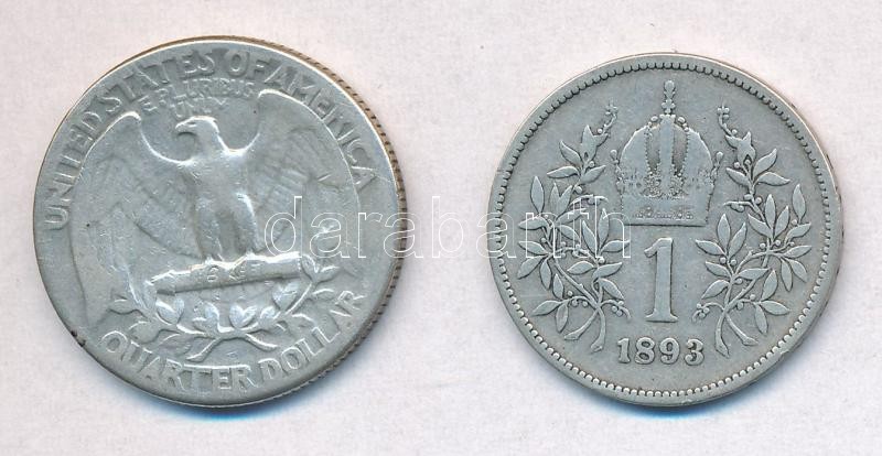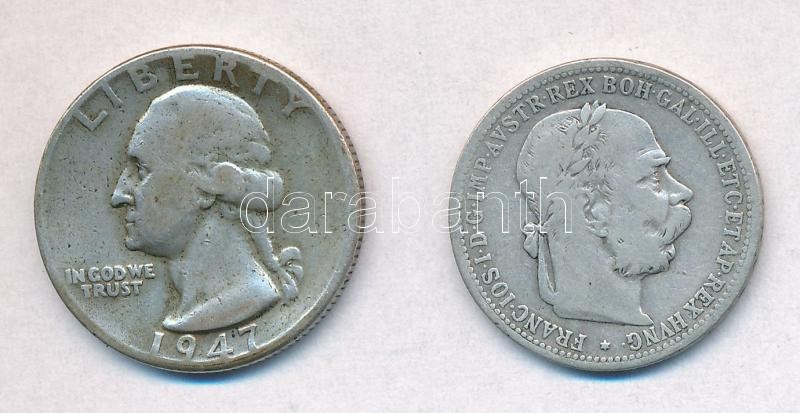 Vegyes: Amerikai Egyesült Államok 1947. 1/4$ Ag "Washington" + Ausztria 1893. 1K Ag "Ferenc József" T:2-