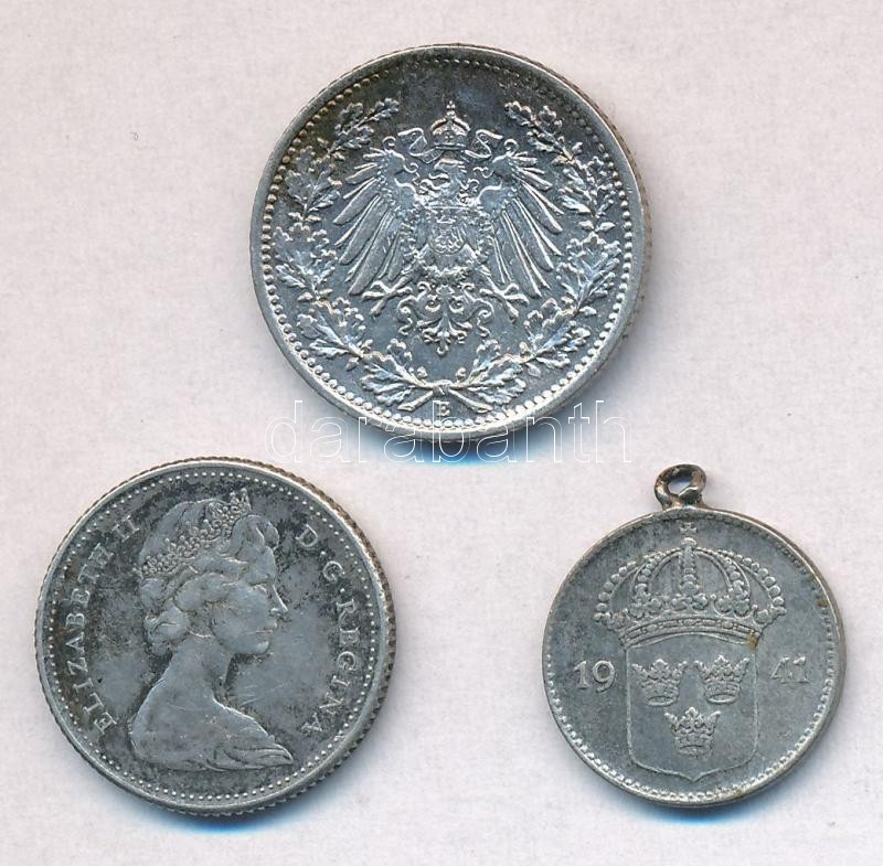 Vegyes: Kanada 1965. 10c Ag + Német Birodalom 1915E 1/2M Ag + Svédország 1941G 10ö Ag rajta fül T:1-,2,2-