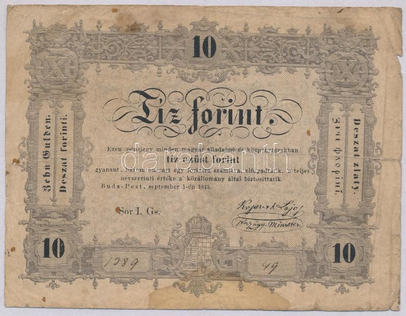 Leírás: 1848. 10Ft "Kossuth Bankó" T:III,III-