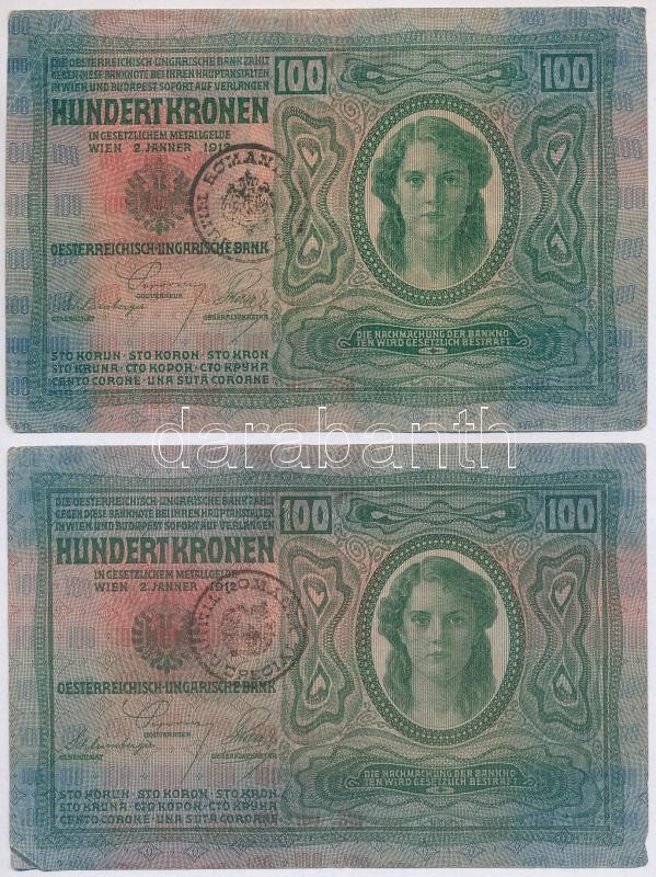 Leírás: 1912. 100K (2x) + 1913. 20K (2x) mind a négy román felülbélyegzéssel T:III