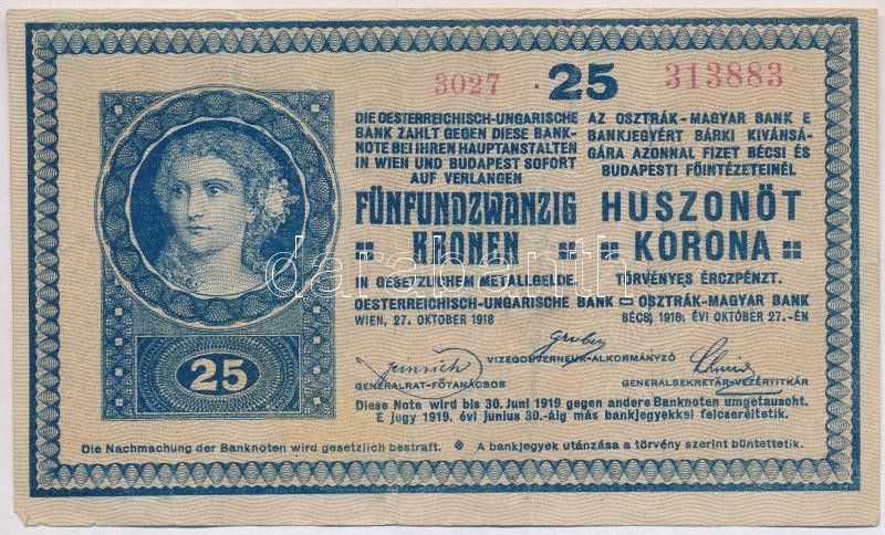 1918. 25K "3027" 3,5mm, sima hátlappal, eltérő méretű soroza... https://www.darabanth.com/hu/318-Gyorsarveres/318.0/Numizmatika/Magyar-bankjegyek~1000006/1918-25K-3027-3-5mm-sima-hatlappal-eltero-meretu-sorozat-es-sorszammal-TIII~II1755347