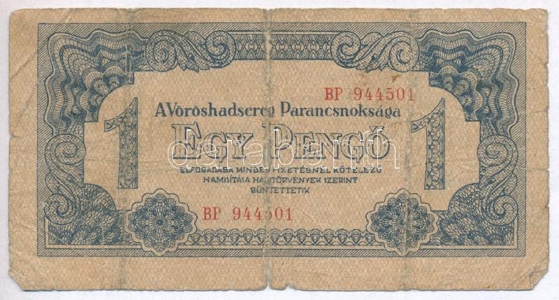 Leírás: 1944. 1P " A Vöröshadsereg Parancsnoksága" sorszámmal és függőleges alapnyomattal T:III-