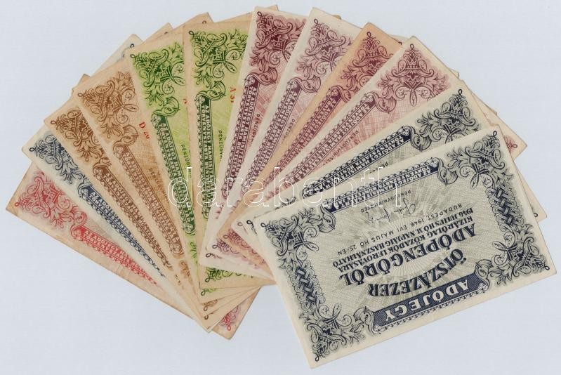 Leírás: 1946. 12db-os vegyes adópengő bankjegy tétel T:III