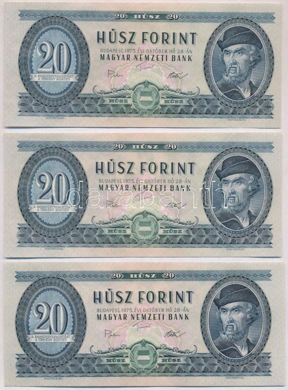 Leírás: 1969-1975. 20Ft (5x) közte 2db közeli sorszám T:I-