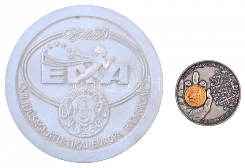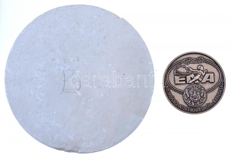 1995. "XIII. Ifjúsági Atlétiaki Európa Bajnokság - ENA" hátlapi gipsz nagyminta (153mm) + 1995. "XIII. Ifjúsági Atlétiaki Európa Bajnokság - ENA / Nyíregyháza Hungary" ezüstpatinázott emlékérem, aranyozott fém betéttel "CITVS ALTVS FORTVS - 1995. július 27-30. Nyíregyháza" (65mm) T:1-,2