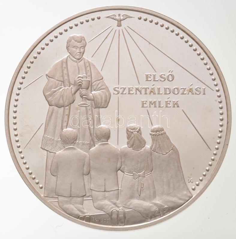 Leírás: Kósa István (1953-) DN "Első szentáldozási emlék" jelzett Ag emlékérem, tanúsítvánnyal (31,1g/0.999/42mm) T:PP