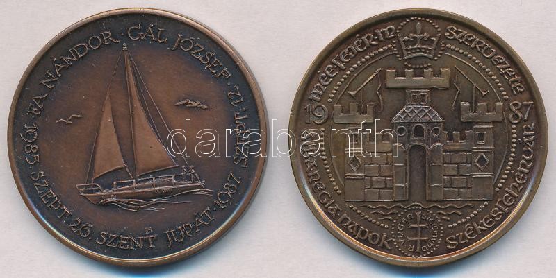 Leírás: Lapis András (1942-) 1987. "MÉE Székesfehérvár - A magyarhoni vitorláshajózók első földkörüli útjának emlékére / Szent Jupát - Fa Nándor, Gál József" Br emlékérem (42,5mm) + Fritz Mihály (1947- ) 1988. "Zsigmond / MÉE Fejér megyei szervezete - Alba Regia Napok Székesfehérvár 1987" Br emlékérem (42,5mm) T:1-