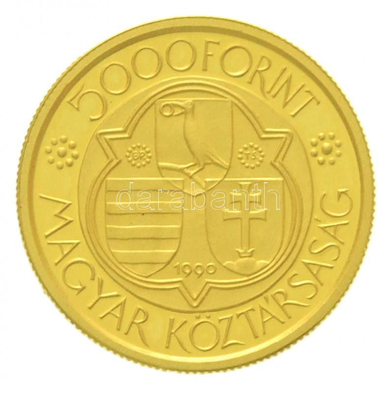 Leírás: 1990. 5000Ft Au "Mátyás király" (6,98g/0.986) T:PP kis ph.,ujjlenyomat