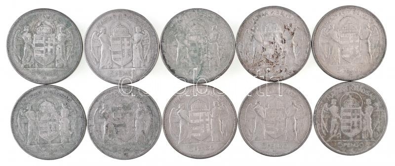 Leírás: 1930. 5P Ag "Horthy jobbra" (10x) T:2-,3 patina, karc, szennyeződés