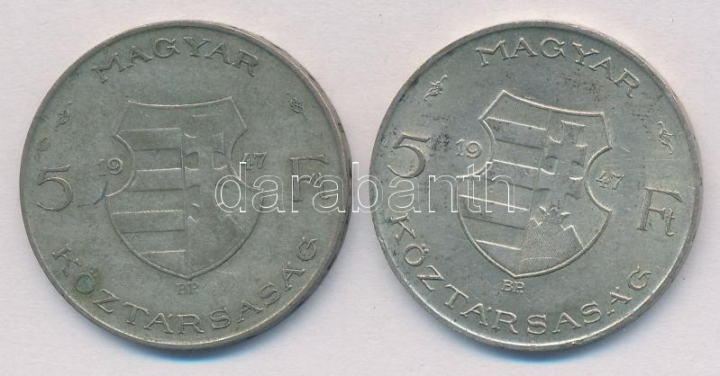 Leírás: 1947. 5Ft Ag "Kossuth" (2x) T:2- patina, karc