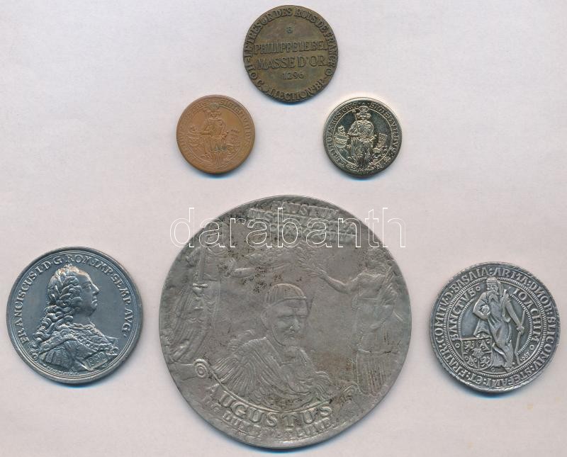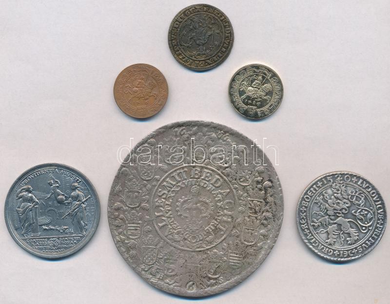 Leírás: 6db-os vegyes fém emlékérem és érme hamisítvány tétel T:vegyes