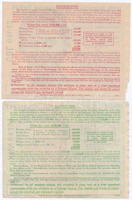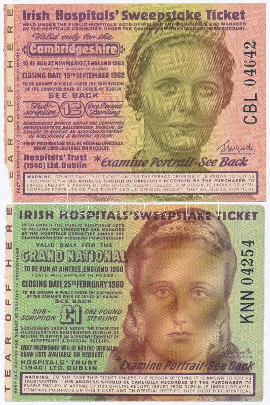 Leírás: Írország 1960-1962. 1Ł (2xklf) "Ír Kórházak Sorsjátéka" sorsjegy T:II-,III