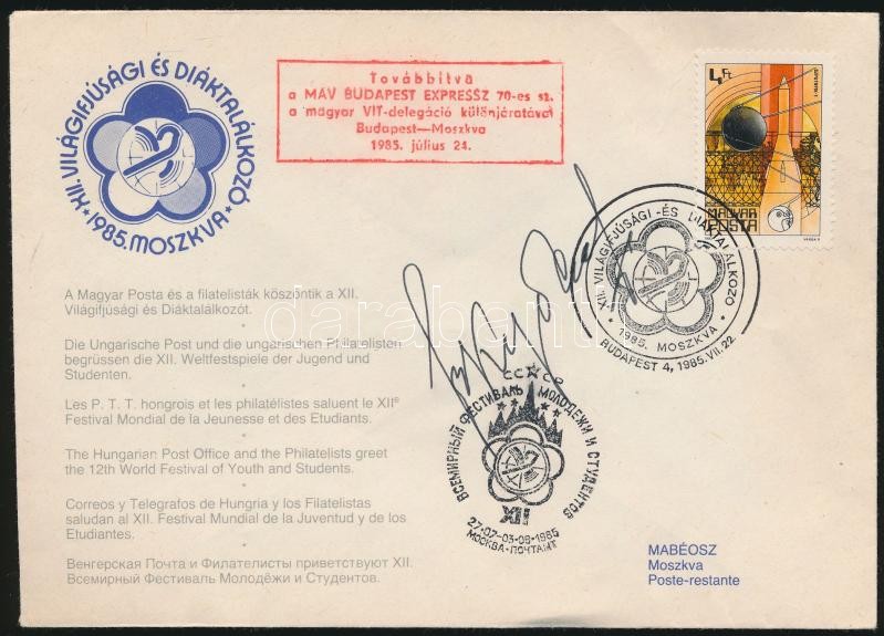 Leírás: 1985 VIT FDC, Valerij Kubaszov űrhajós aláírásával / Russian astronaut autograph signature