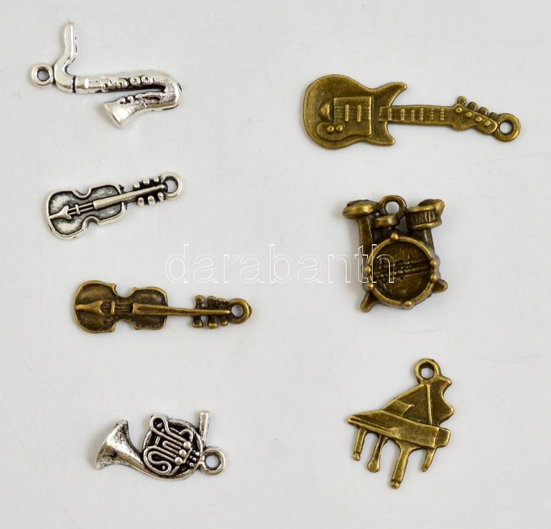 Leírás: 7 db hangszereket ábrázoló bizsu medál