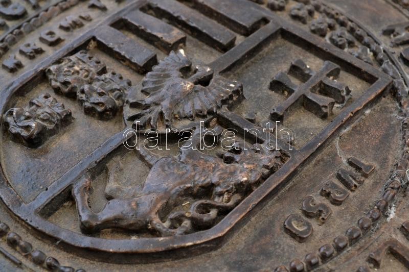 Leírás: Címeres festett gipsz plakett, "Moneta Vladislai D. E. Regie Ungarie" körirattal, szélén kis lepattanásokkal, d: 27 cm