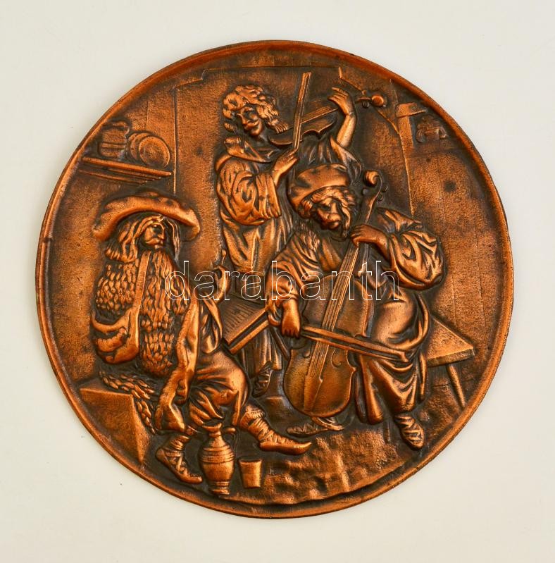 Leírás: Muzsikálók rezezett fali tál, d:28 cm