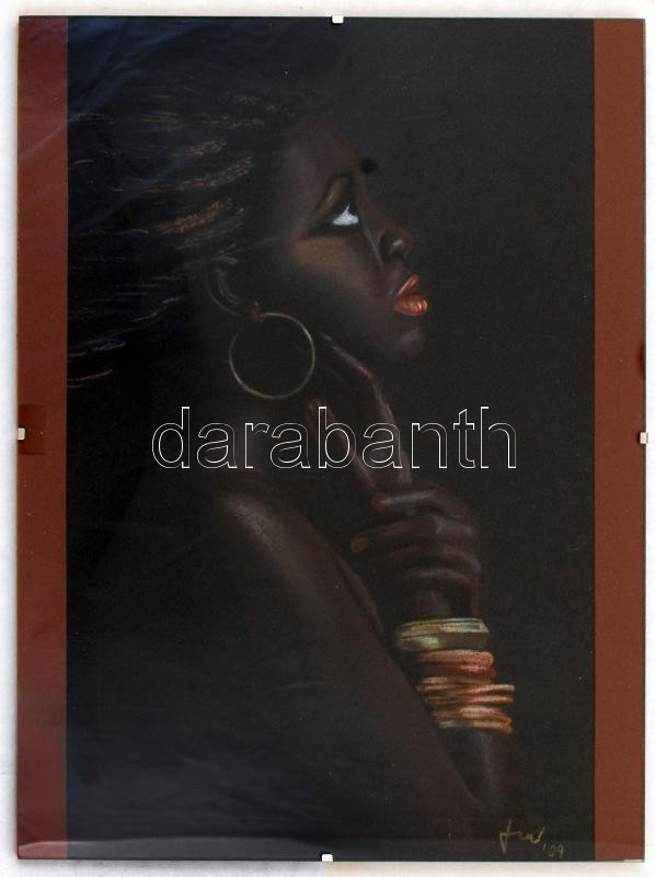 Leírás: Fazekas Marianna (1968- ): Női fej, pasztell, farost, jelzett, üvegezett, 40×25 cm
