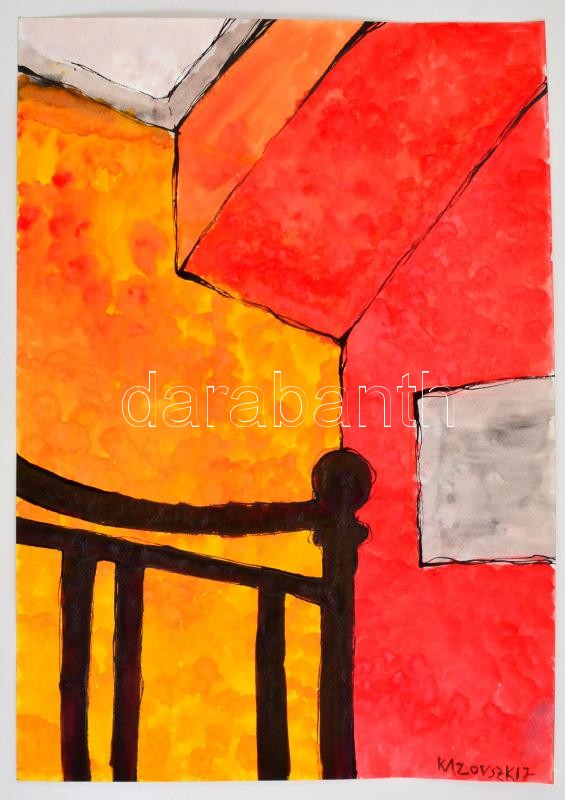 Leírás: Kazovszkij jelzéssel: Fekete korlát. Tempera-tus, papír, 50×70 cm
