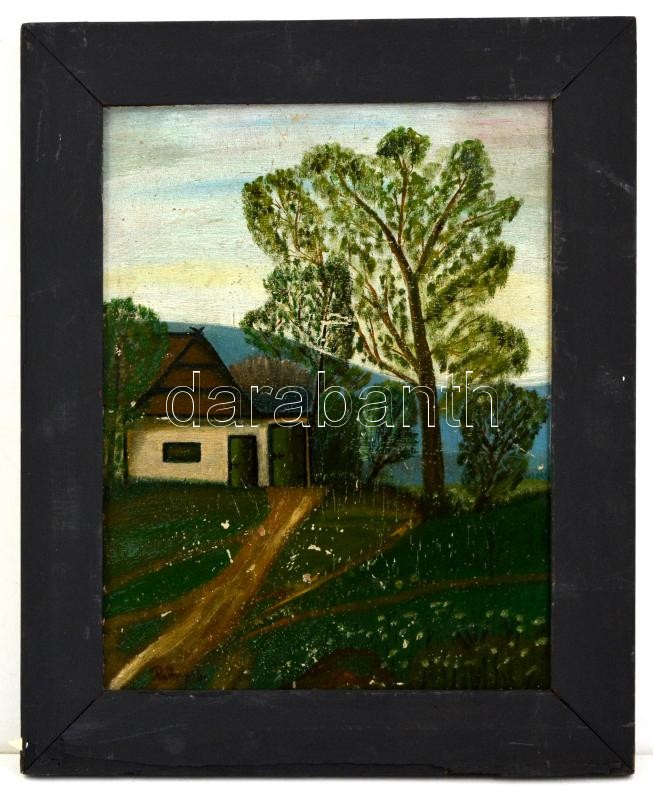 Leírás: Rudnay jelzéssel: Ház a domb tetőn. Olaj, karton, sérült, keretben, 34×26 cm
