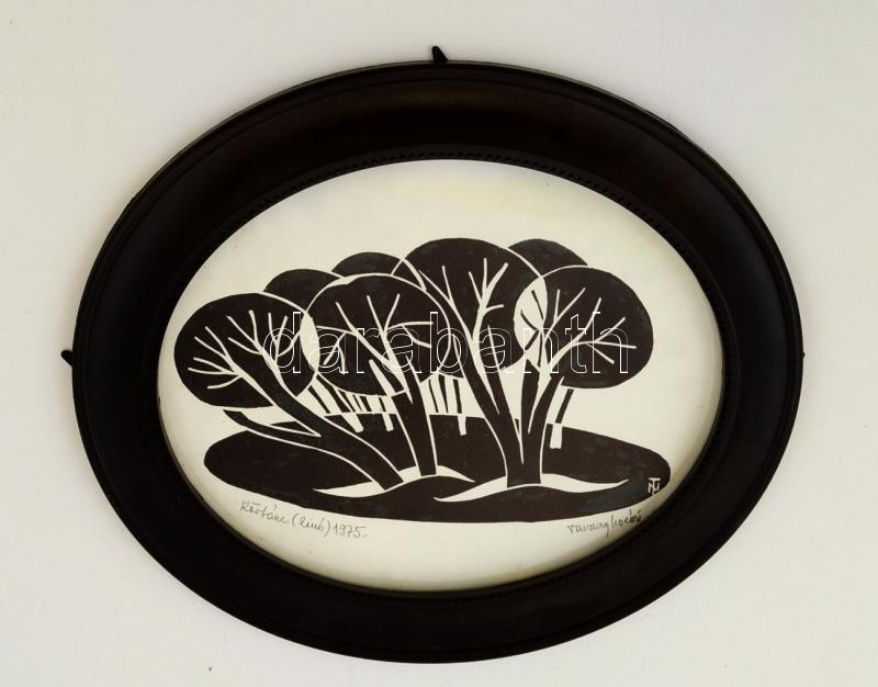 Leírás: Tavaszy Noémi (1927-): Körtánc. Linó, papír, jelzett, műanyag keretben, 25×19 cm
