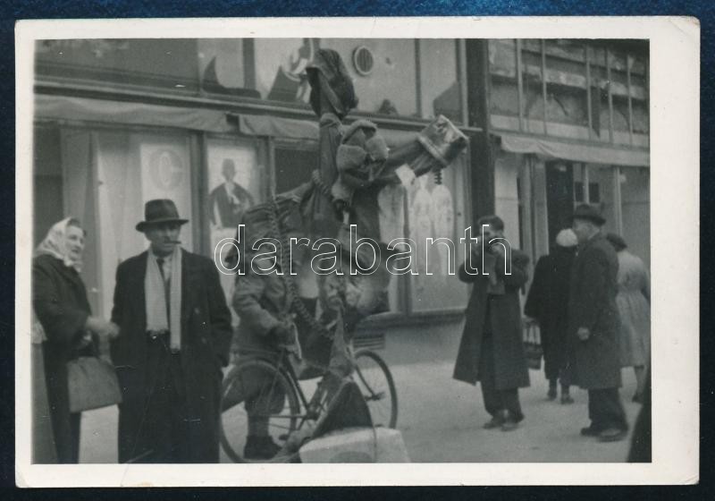 Leírás: 1956 Memento mori Rákosival, valószínűleg publikálatlan fotó a forradalom időszakából, 6,5x9,5 cm