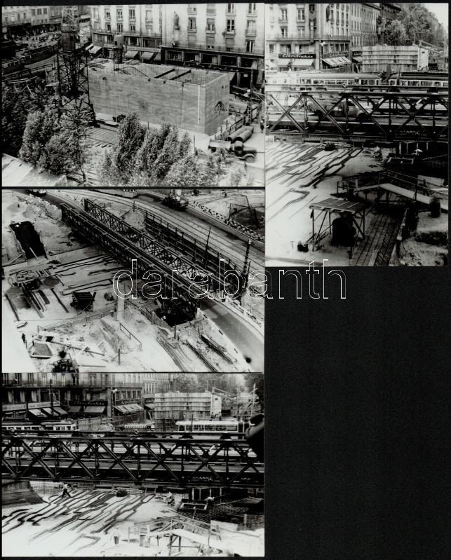 Leírás: 1963 Budapest, Astoria aluljáró építése, és a metróhoz szükséges betonszekrény süllyesztés előtt, 4 db vintage fotó, 9x12 cm