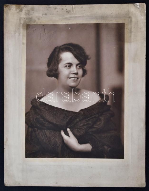 Leírás: Női portré, Hollenzer László budapesti fényképész felvétele, pecséttel jelzett 31x25 cm