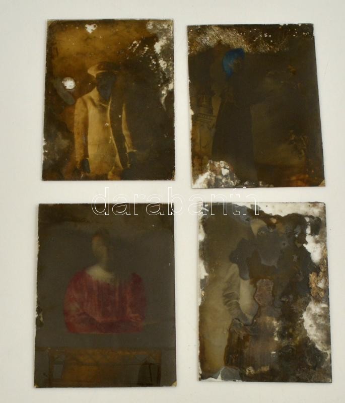 Leírás: cca 1900 Műtermi portrék, 4 db üveglemez negatív, 12x9 cm