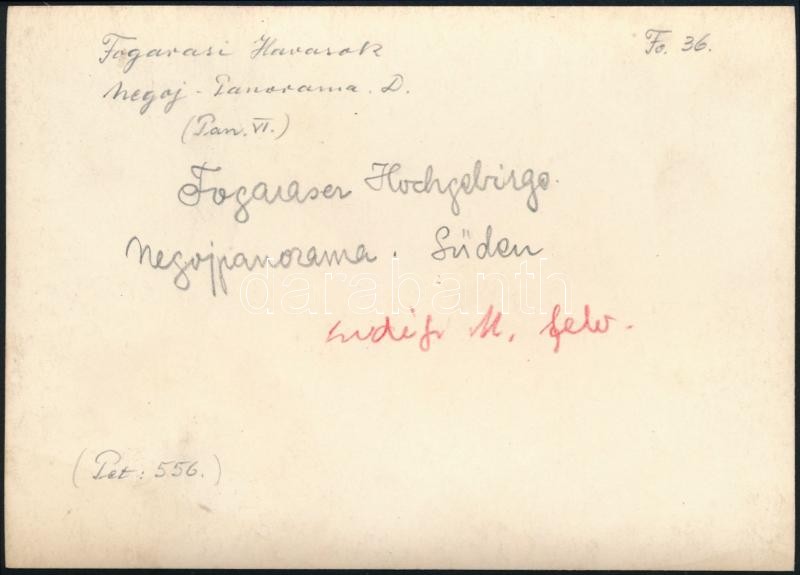 cca 1910 Fogarasi-havasok, kilátás a Negojról, Erdélyi Mór felvétele, hátulján feliratozva, pecséttel jelzett, 11,5×16 cm / cca 1910 Munţii Făgăraş, the view from Negoiu, vintage photo, with notes on its back, 11,5×16 cm