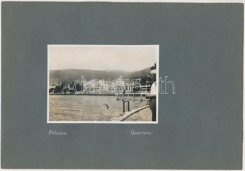 cca 1920 Abbázia, 10 db feliratozott fotó öt kartonlapra felragasztva, ismeretlen fotográfus hagyatékából, 8x11 cm, karton 17x25 cm /