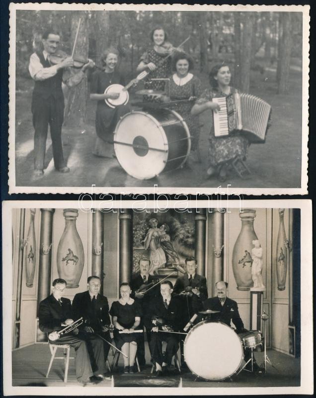 cca 1930-1940 Kis zenekarokat ábrázoló fotók, 2 db fotólap, 8,5x13,5 c... https://www.darabanth.com/hu/319-Gyorsarveres/319.0/Festmeny-mutargy-papirregiseg-egyeb/Foto~20/cca-1930-1940-Kis-zenekarokat-abrazolo-fotok-2-db-fotolap-8-5x13-5-cm~II1759804