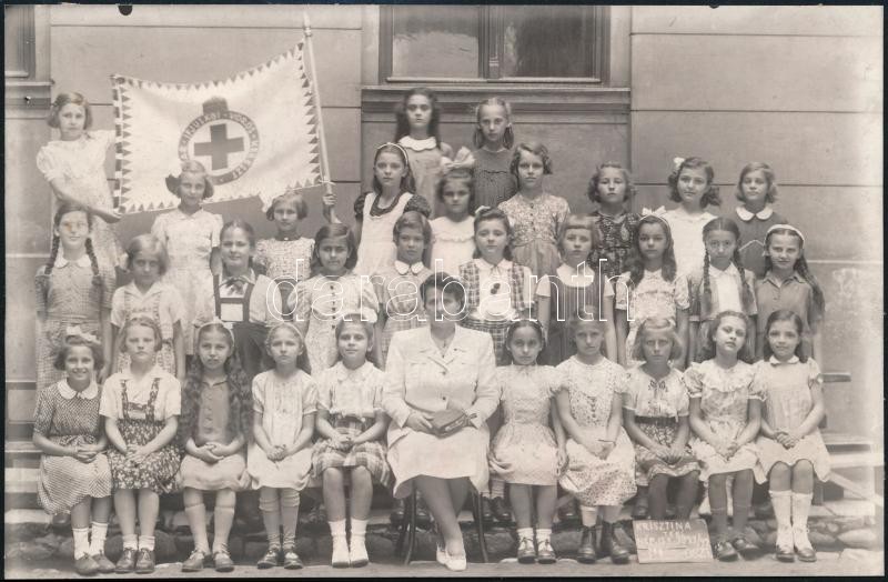 Leírás: cca 1930 Magyar Ifjúsági Vöröskereszt tablófotó 16x12 cm