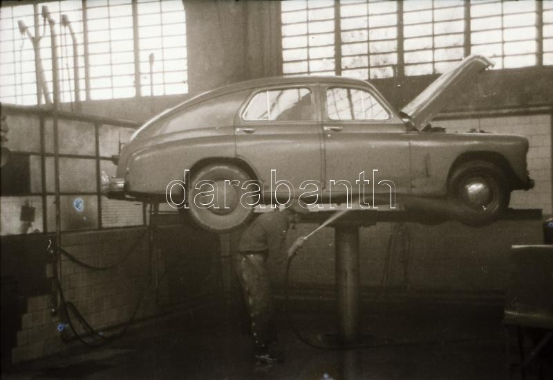 cca 1948 Képriport egy gépkocsi szervizről, 44 db szabadon felhasználható vintage negatív Kotnyek Antal (1921-1990) budapesti fotóriporter hagyatékából, 24x36 mm