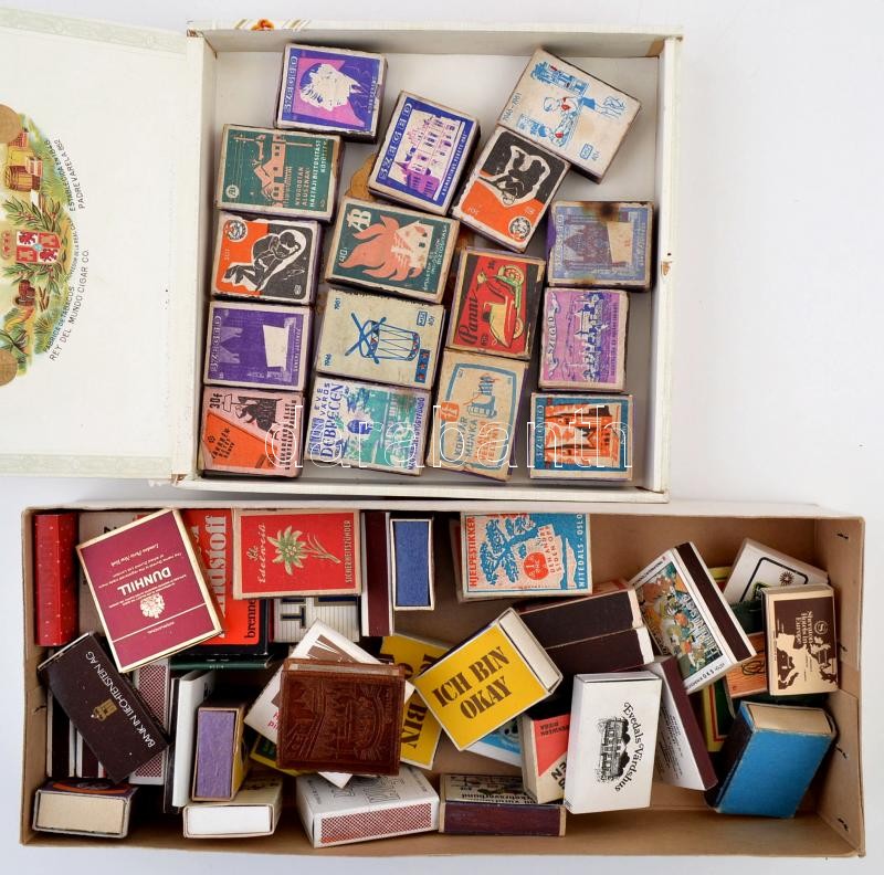 Leírás: Vegyes gyufásdoboz tétel, két dobozban, magyar és külföldi dobozokkal