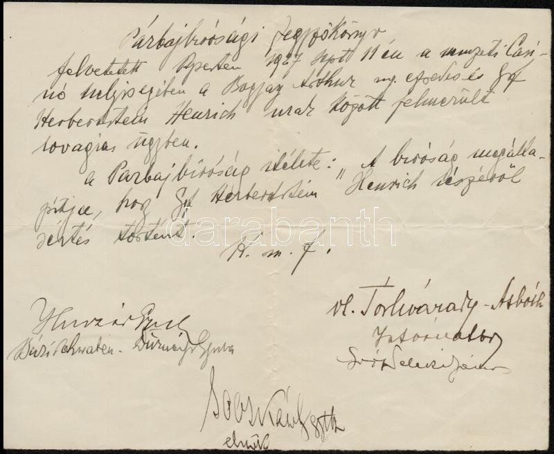 1917-1928 Vegyes okmány tétel: 2 db párbaj jegyzőkönyv, szolgálati jeg... https://www.darabanth.com/hu/319-Gyorsarveres/319.0/Festmeny-mutargy-papirregiseg-egyeb/Militaria~26/1917-1928-Vegyes-okmany-tetel-2-db-parbaj-jegyzokonyv-szolgalati-jegy-jegyzokonyv-kiadas~II1764457