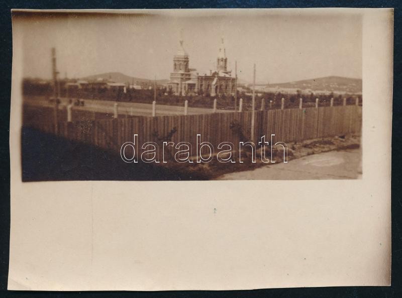 LeÃrás: cca 1915 Pjescsanka hadifogolytábor, kilátás a templomra, fotó, hátulján feliratozva, 8×11 cm /