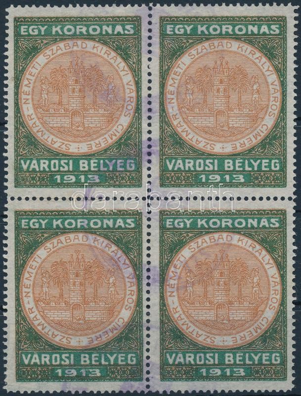 1913 Szatmárnémeti városi illetékbélyeg 1K 4-es tömbben (80.000) https://www.darabanth.com/hu/319-Gyorsarveres/319.0/Festmeny-mutargy-papirregiseg-egyeb/Okmanybelyegek~16/1913-Szatmarnemeti-varosi-illetekbelyeg-1K-4-es-tombben-80000~II1694117