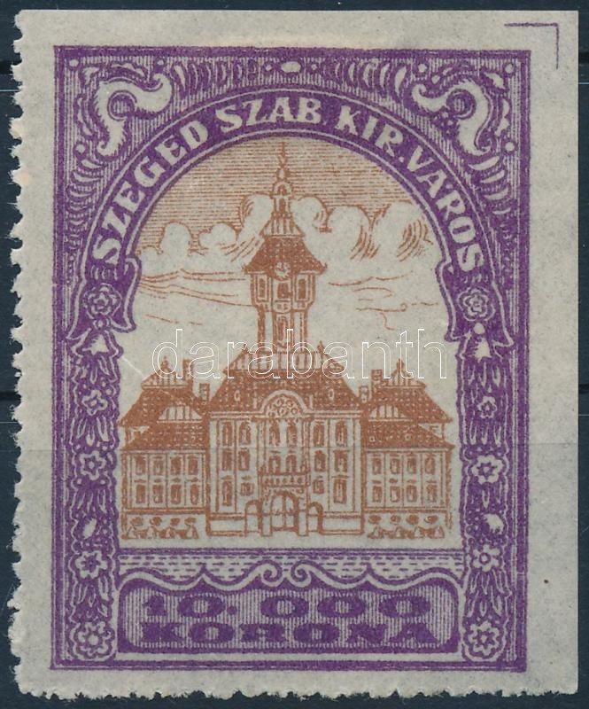 Leírás: 1924 Szeged városi illetékbélyeg 10.000K két oldalon fogazatlan (7.000)