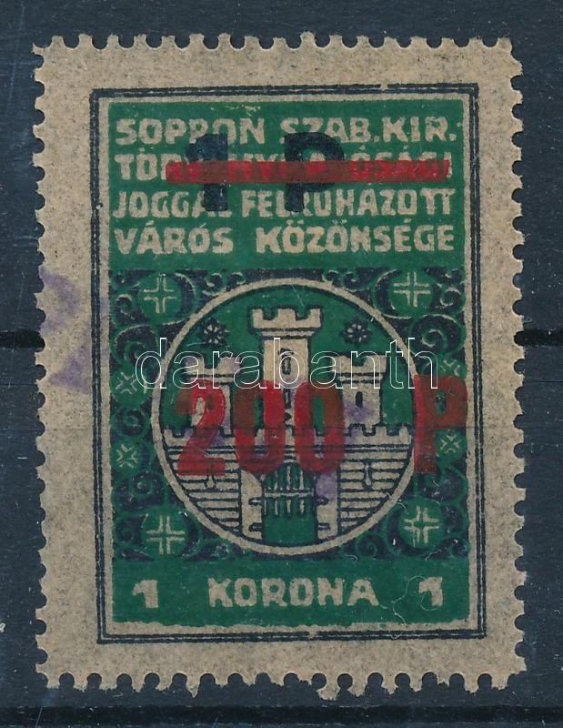 Leírás: 1945 Sopron városi illetékbélyeg 200 P / 1 P / 1 K