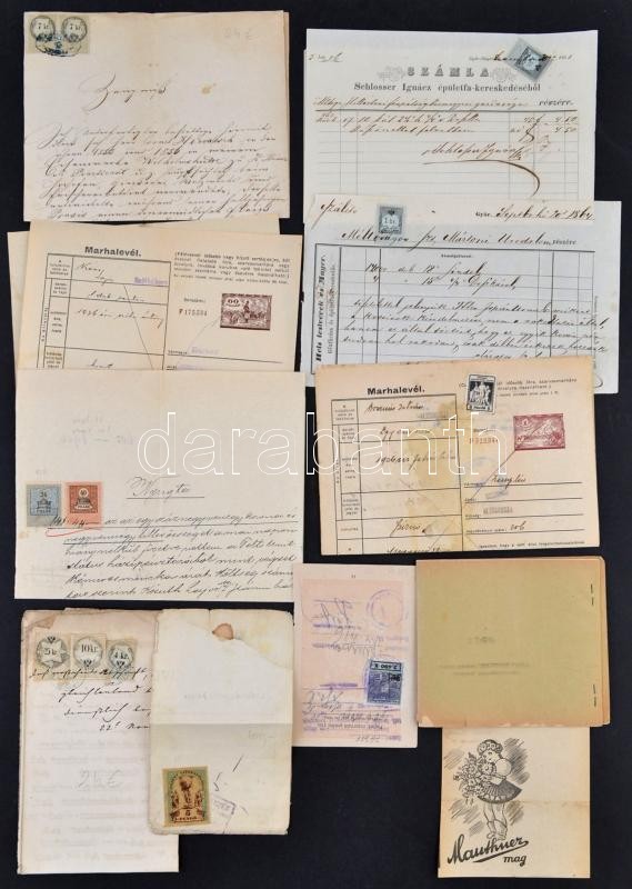 Leírás: cca 1860-1940 10 db klf okmány klf okmánybélyegekkel