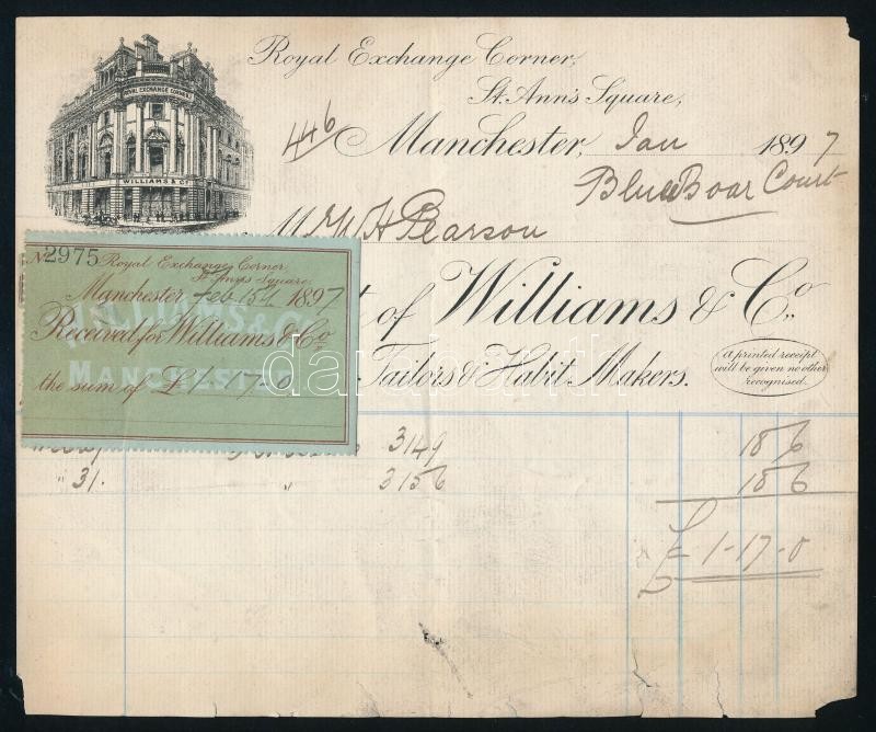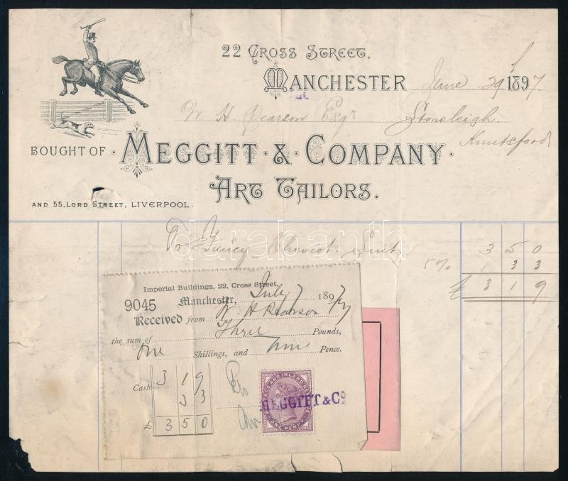 1896-1897 4 db brit számla, közte díszes fejlécesek, okmánybélyegekkel https://www.darabanth.com/hu/319-Gyorsarveres/319.0/Festmeny-mutargy-papirregiseg-egyeb/Okmanyok~17/1896-1897-4-db-brit-szamla-kozte-diszes-fejlecesek-okmanybelyegekkel~II1740995