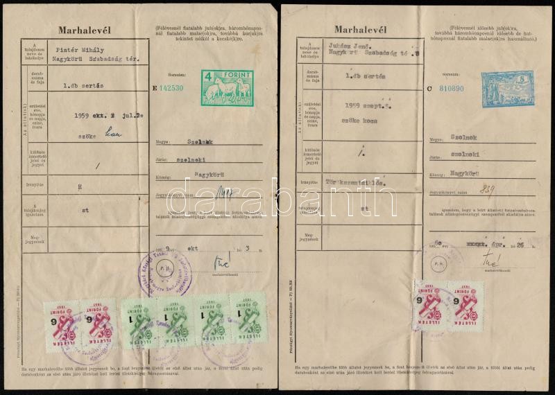 Leírás: 1943-1960 Marhalevél és szállítólevél, összesen 3 db, illetékbélyegekkel