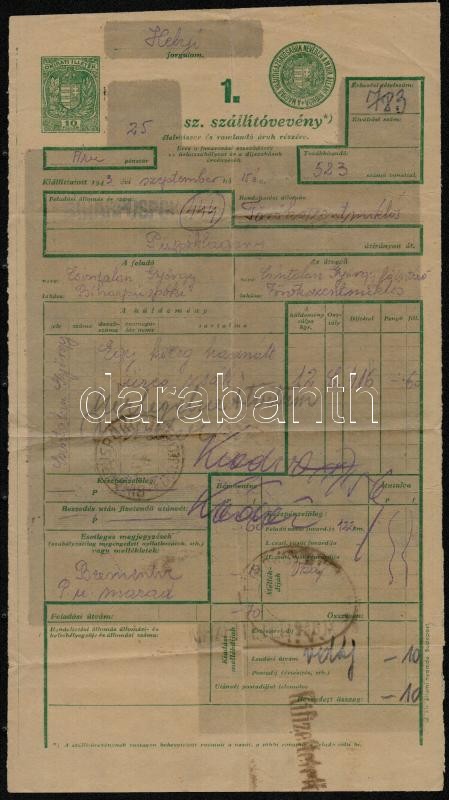 1943-1960 Marhalevél és szállítólevél, összesen 3 db, illetékbélyegekk... https://www.darabanth.com/hu/319-Gyorsarveres/319.0/Festmeny-mutargy-papirregiseg-egyeb/Okmanyok~17/1943-1960-Marhalevel-es-szallitolevel-osszesen-3-db-illetekbelyegekkel~II1761210