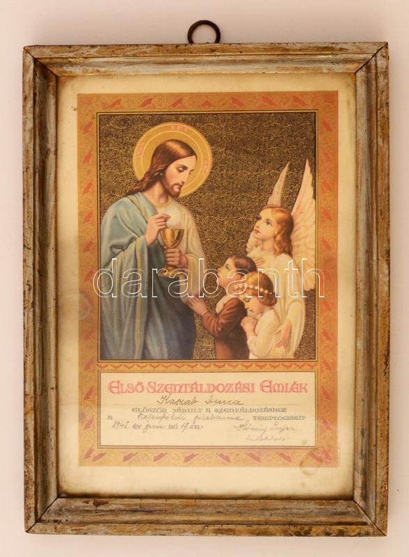 1945 Szentáldozási emléklap a kelenföldi plébániáról, üvegezett fa ker... https://www.darabanth.com/hu/319-Gyorsarveres/319.0/Festmeny-mutargy-papirregiseg-egyeb/Okmanyok~17/1945-Szentaldozasi-emleklap-a-kelenfoldi-plebaniarol-uvegezett-fa-keretben~II1418176