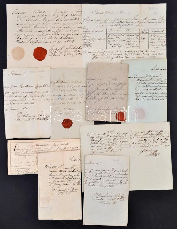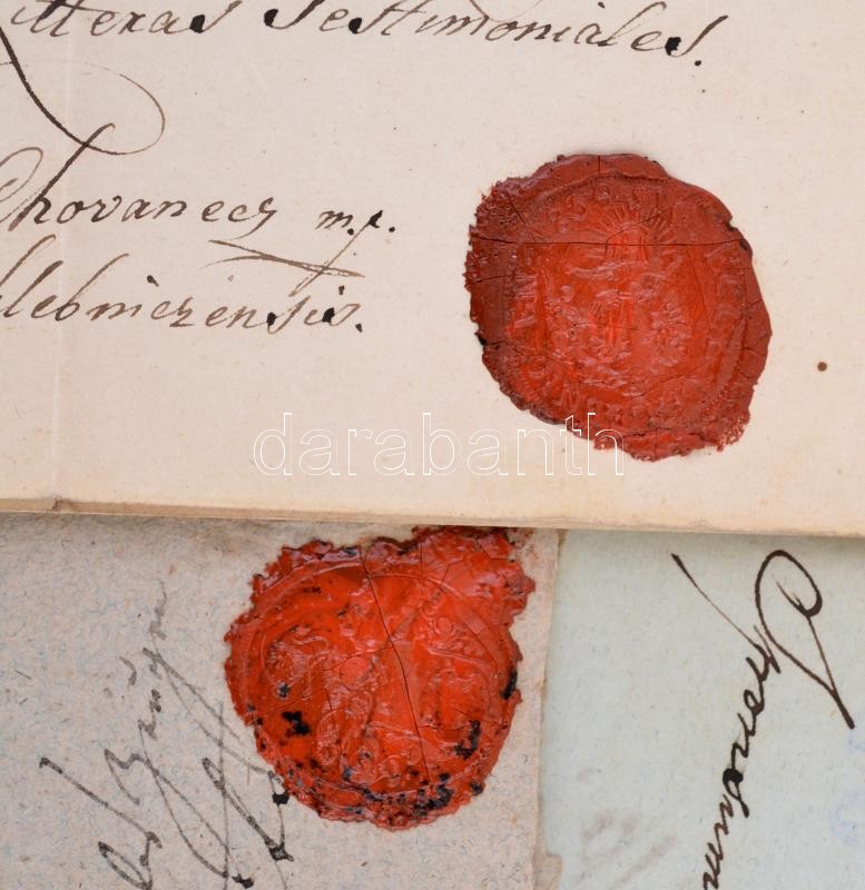 Leírás: cca 1800-1830 10 db klf hivatalos okmány címeres és egyéb pecsétekkel