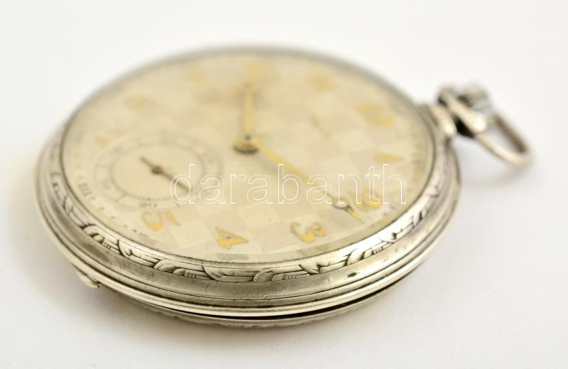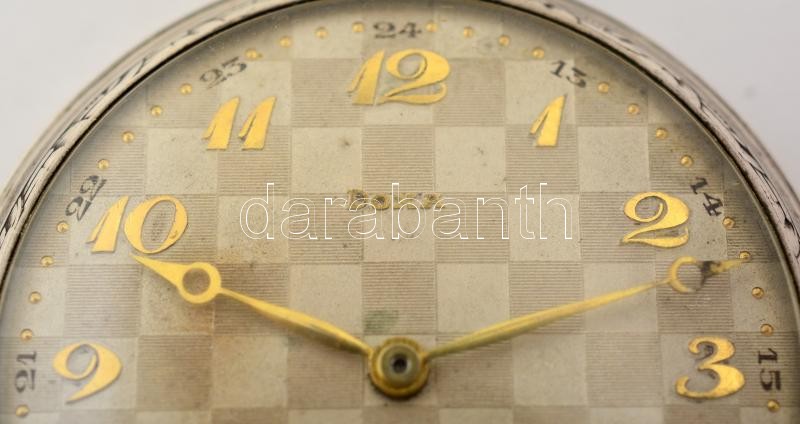 Leírás: Art deco díszítésű supla ezüst fedeles Doxa zsebóra, koszos számlappal, másodperc mutatóval, Jól működik. / Silver Doxa pocket watch. Works well.