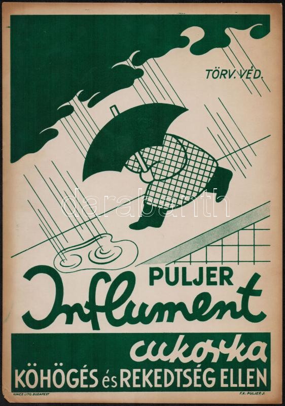 cca 1930 Puljer Influment cukorka reklám plakát, Kincs Lito., 33x23 cm https://www.darabanth.com/hu/319-Gyorsarveres/319.0/Festmeny-mutargy-papirregiseg-egyeb/Plakat~29/cca-1930-Puljer-Influment-cukorka-reklam-plakat-Kincs-Lito-33x23-cm~II1741585